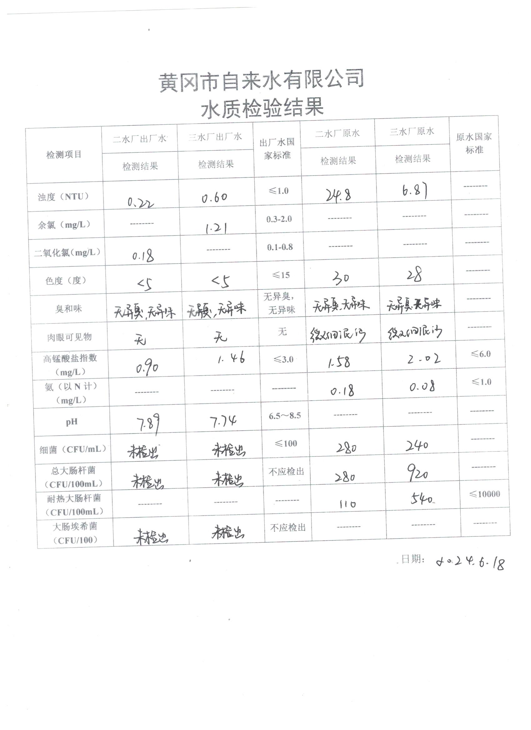 2024年6月18日水質(zhì)檢驗(yàn)日?qǐng)?bào)表