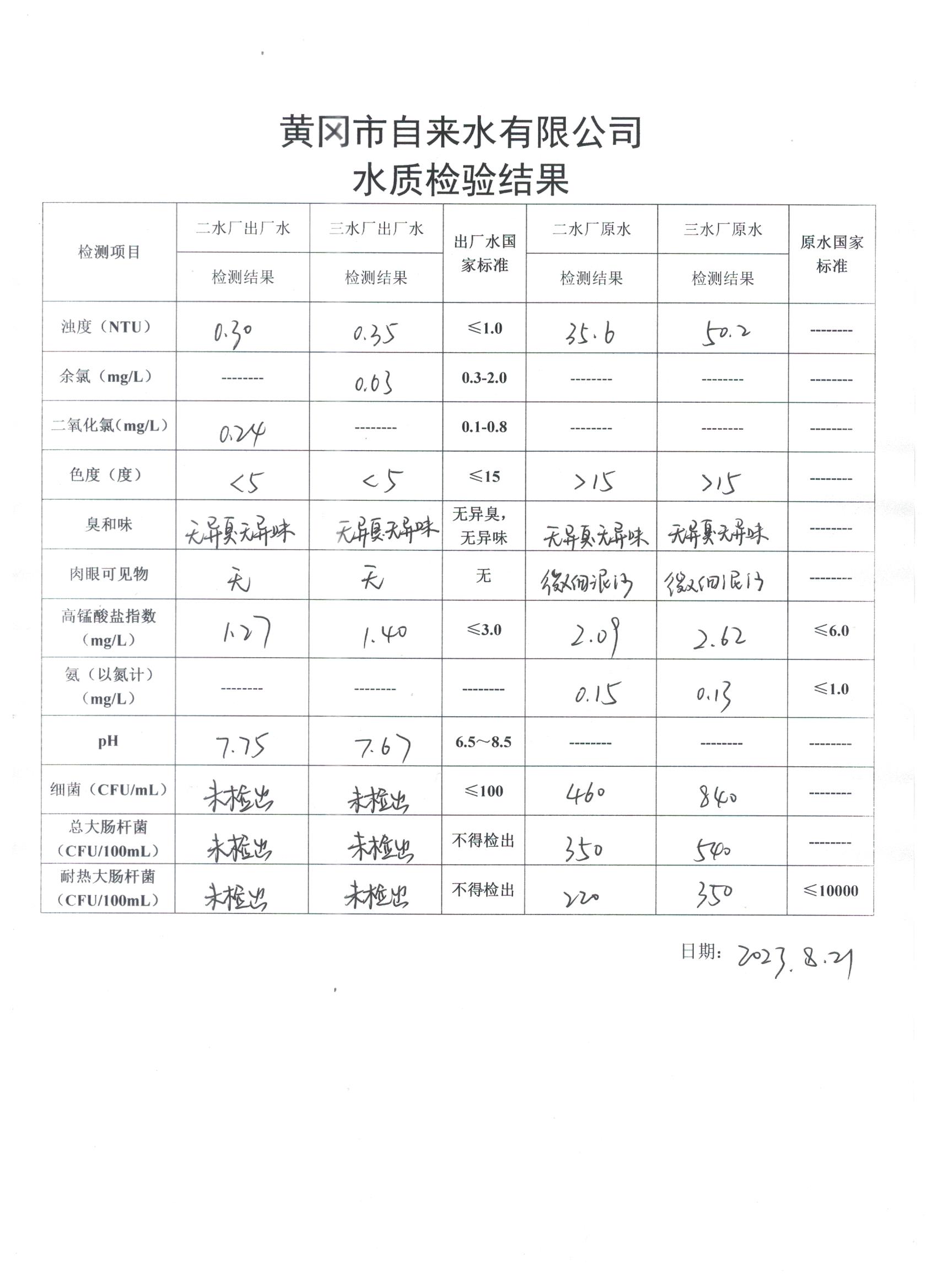 2023年8月21日水質(zhì)檢驗(yàn)日報(bào)表