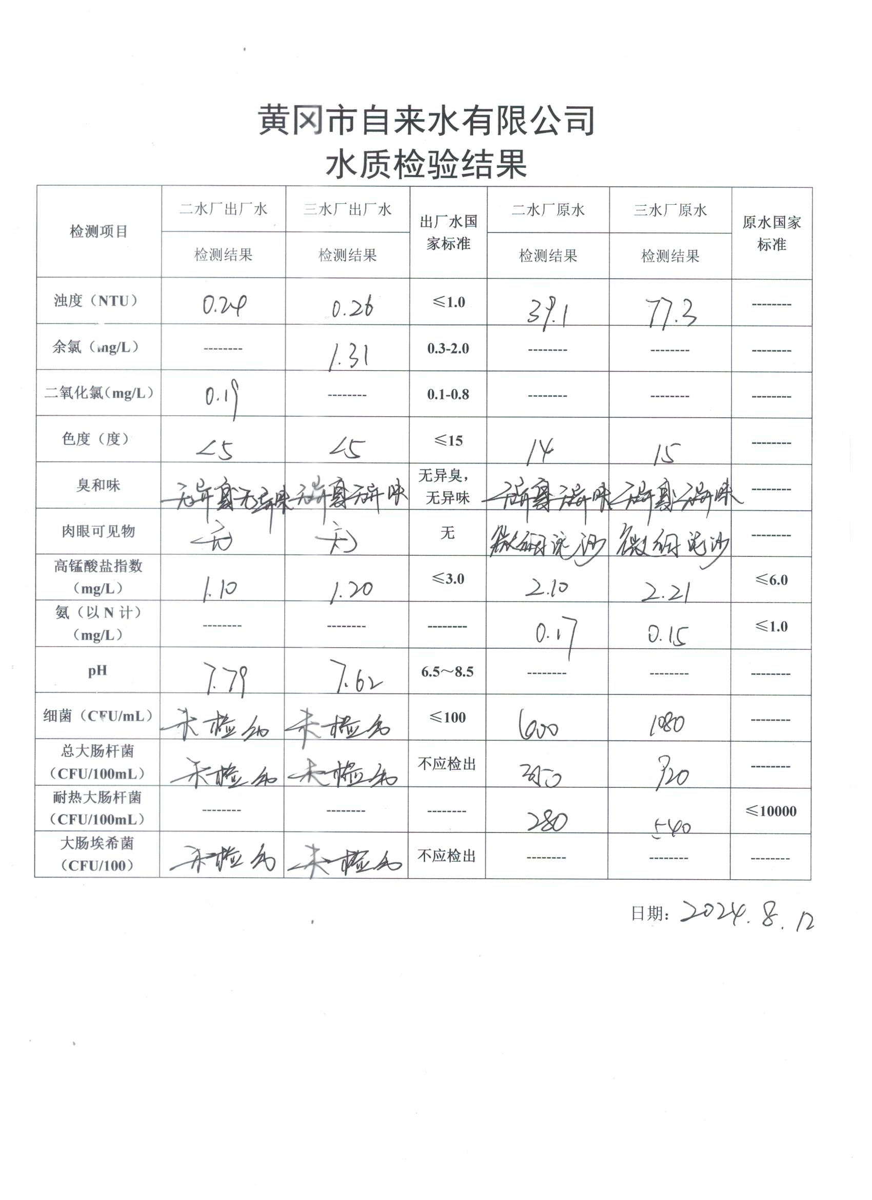2024年8月12日水質(zhì)檢測日報(bào)表