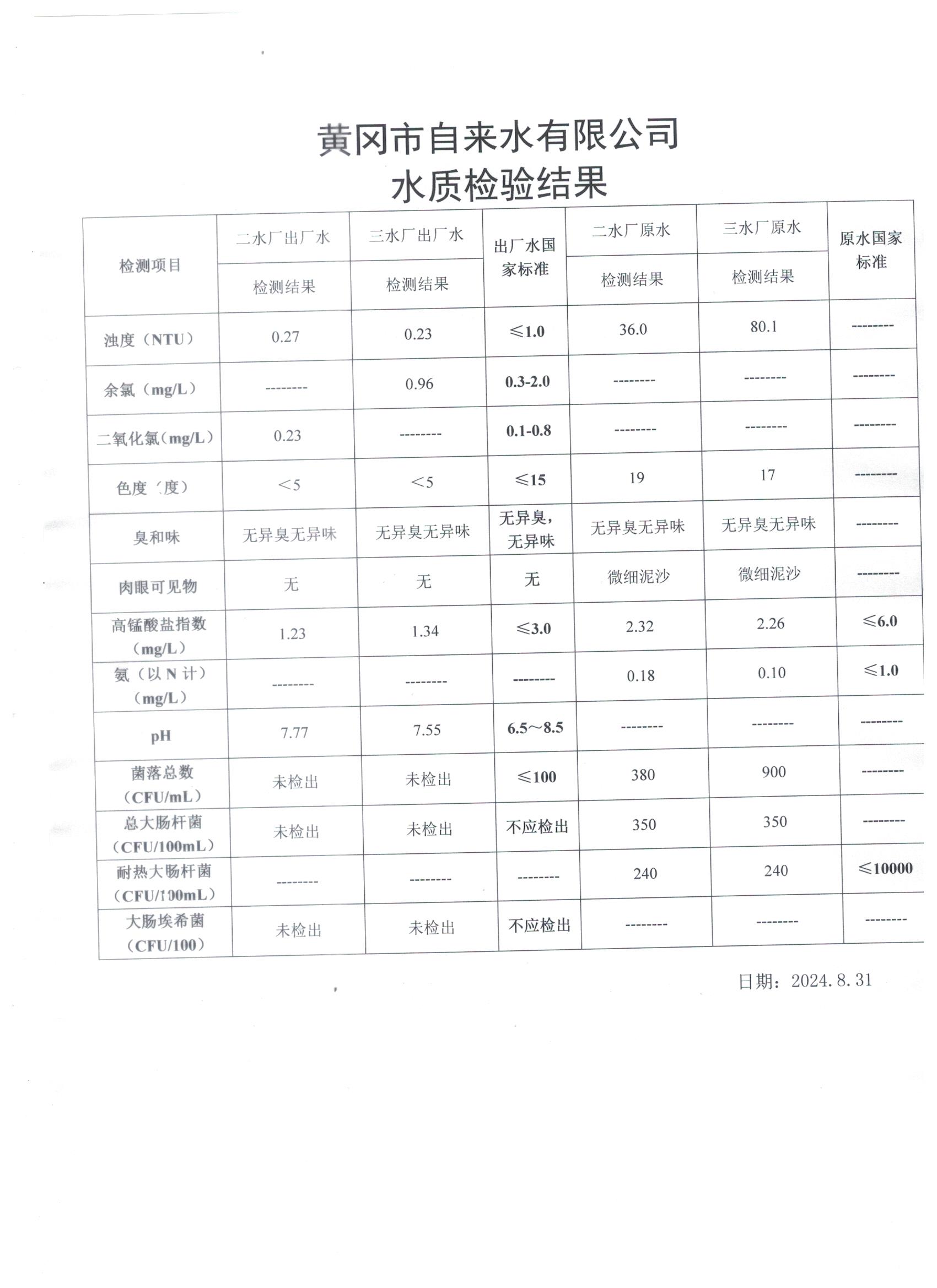 2024年8月31日水質(zhì)檢測(cè)日?qǐng)?bào)表