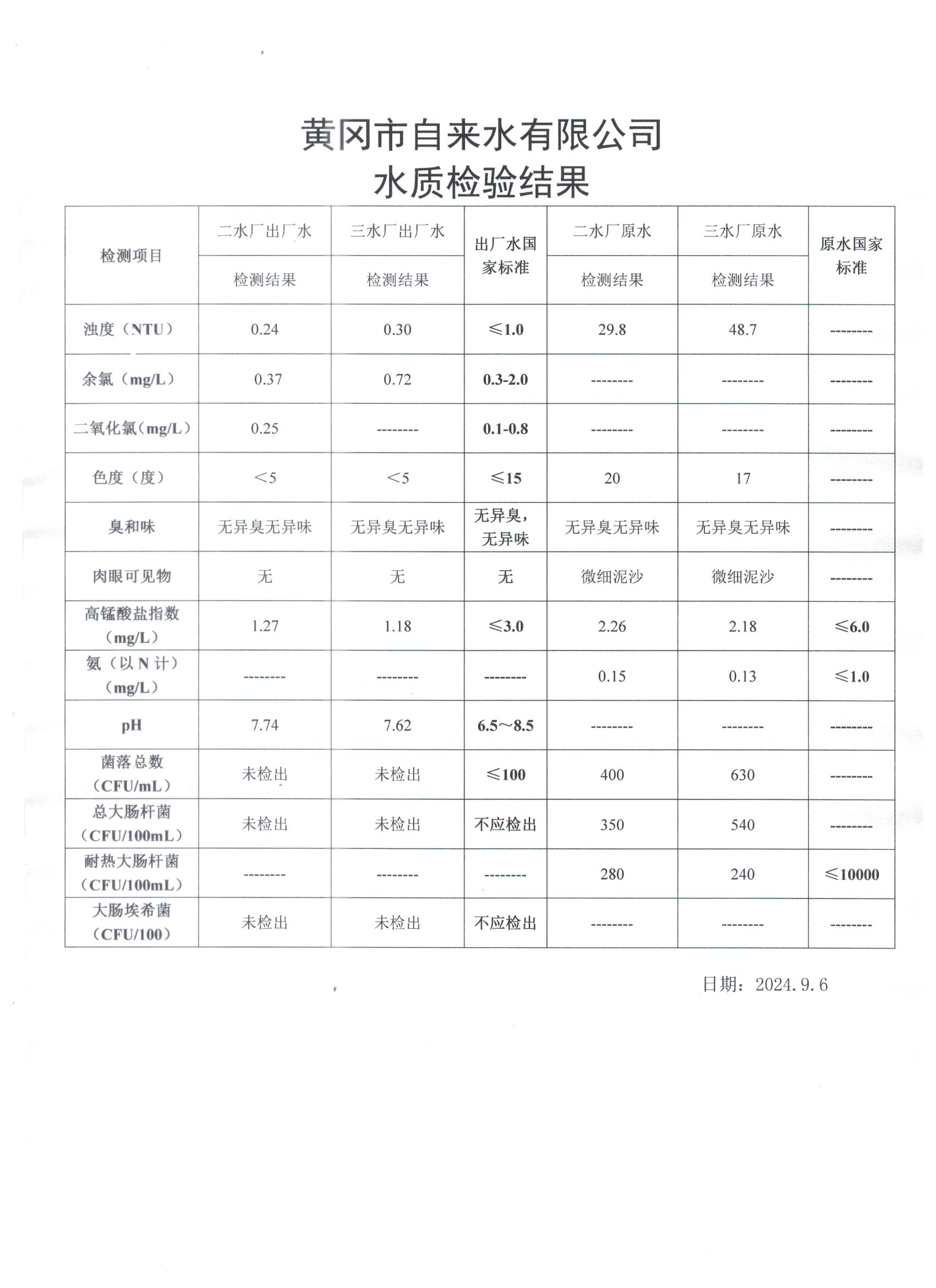 2024年9月6日水質(zhì)檢測(cè)日?qǐng)?bào)表