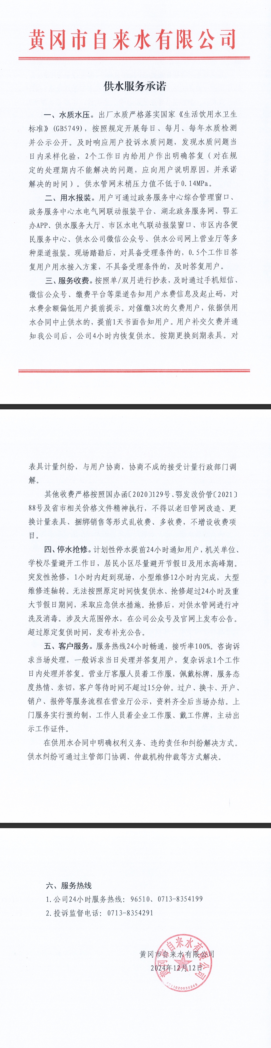 供水服務(wù)承諾
