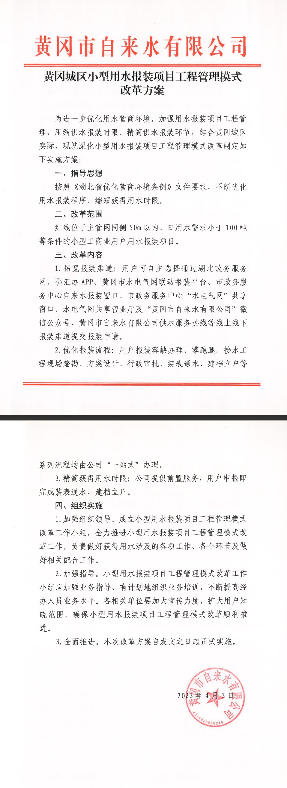 小型用水報裝改革方案