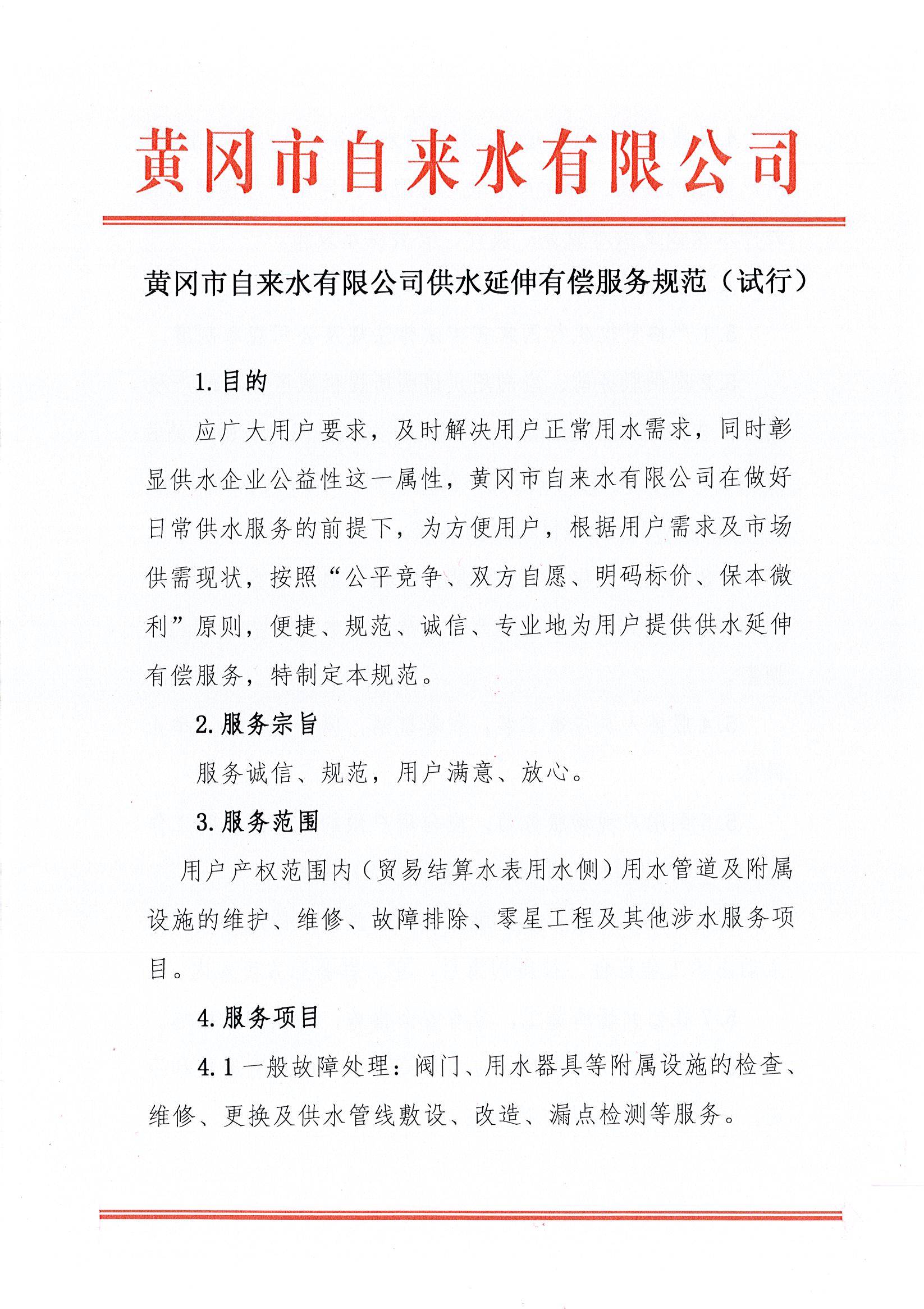 黃岡市自來水有限公司供水延伸有償服務規(guī)范