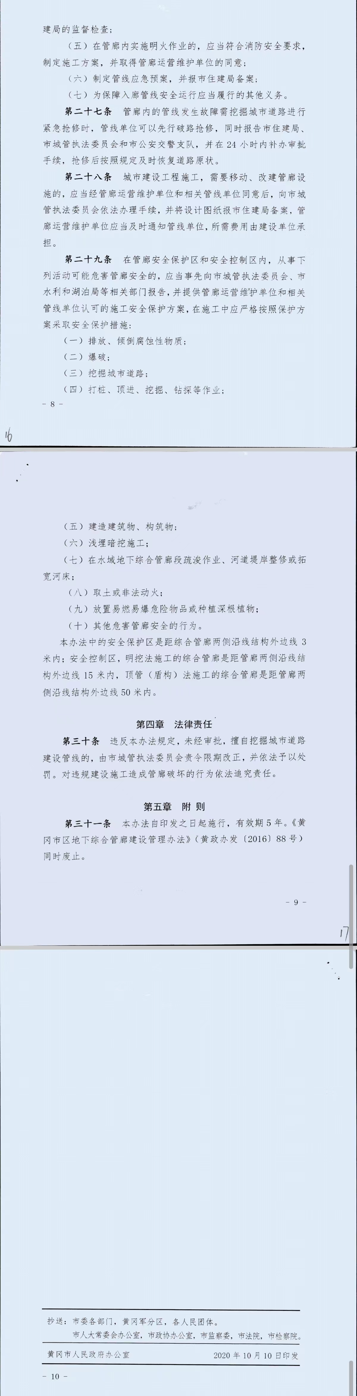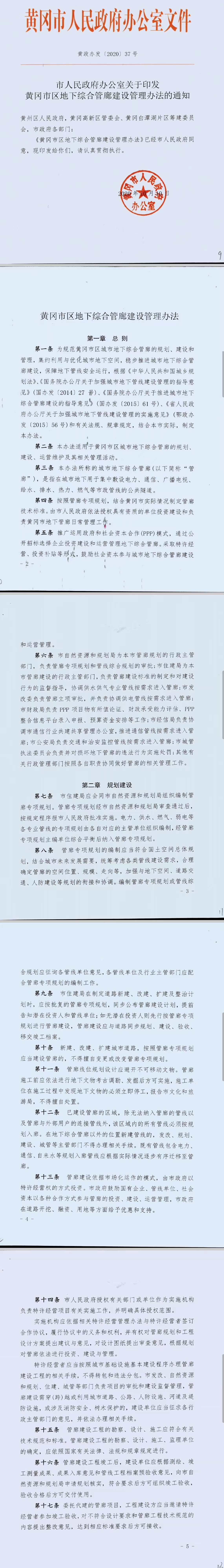 關(guān)于黃岡市區(qū)地下綜合管廊建設(shè)管理辦法的通知