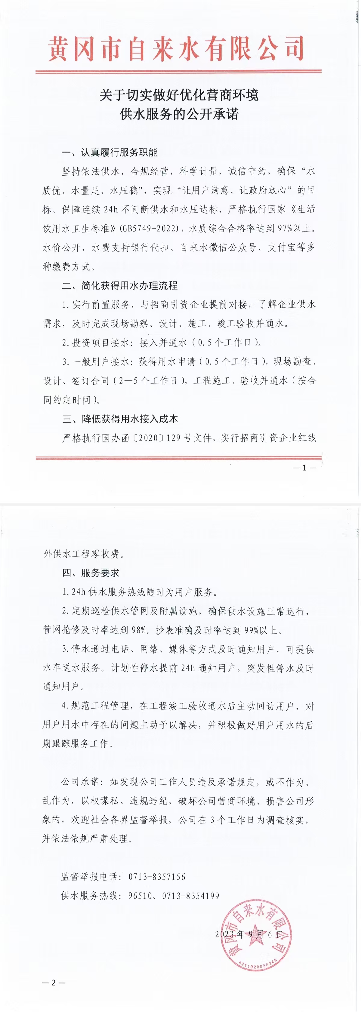 關(guān)于切實(shí)做好優(yōu)化營(yíng)商環(huán)境供水服務(wù)的公開承諾